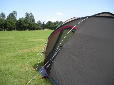 バンガローを利用している人が手前の芝生にスクリーンテントを張っているのも見えました。