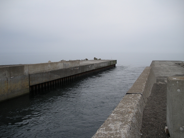 オホーツク海とコムケ湖を結ぶ水路です。汽水湖であるコムケ湖にオホーツク海の水が轟々と流れ込んでいます。