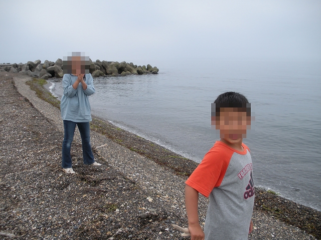 「今度来るときは釣り道具も一緒に持って来ようね」等と子供たちと話をしながら、冷たいオホーツク海の水際にあるきれいな石を拾ったり、面白い形をした流木を集めたりして遊んだのでした。