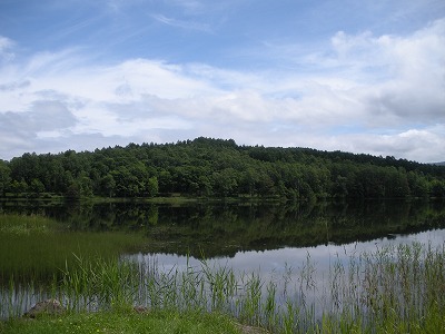 サホロ湖の奥側の岸からサイト方面を眺めました。人工貯水池ですが以外にきれいで驚きました。夏ならもっと緑が映えて美しいかもしれませんね。
