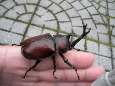 そんな時、息子が大きな声をあげました。テントのすぐ近くにあった外灯の下あたりに立派な雄のカブトムシを発見したのです。