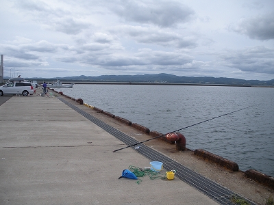 曇っているのでわかりにくいですが、波打ち際の水はとても澄んでいてきれいです。遠浅なのでしょうか?近くで釣りをしている人も見かけました。しばらく見ているとカレイを数匹釣り上げていました。